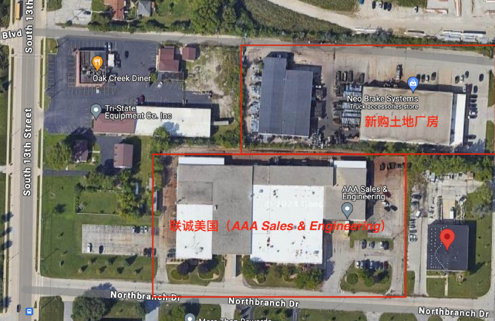 2024年5月16日,聯(lián)誠精密全資子公司聯(lián)誠美國(AAA Sales & Engineering)成功競購土地廠房,新土地廠房用于擴大生產(chǎn)以及拓展業(yè)務(wù)。此次購得的土地廠房位于聯(lián)誠美國原廠房的旁邊,土地面積為1.98英畝,總建筑面積26564平方英尺,其中辦公區(qū)域面積為3364平方英尺,廠房面積為23200平方英尺。未來,新老廠區(qū)可以直接連通,為廠房土地的合理利用提供便利。